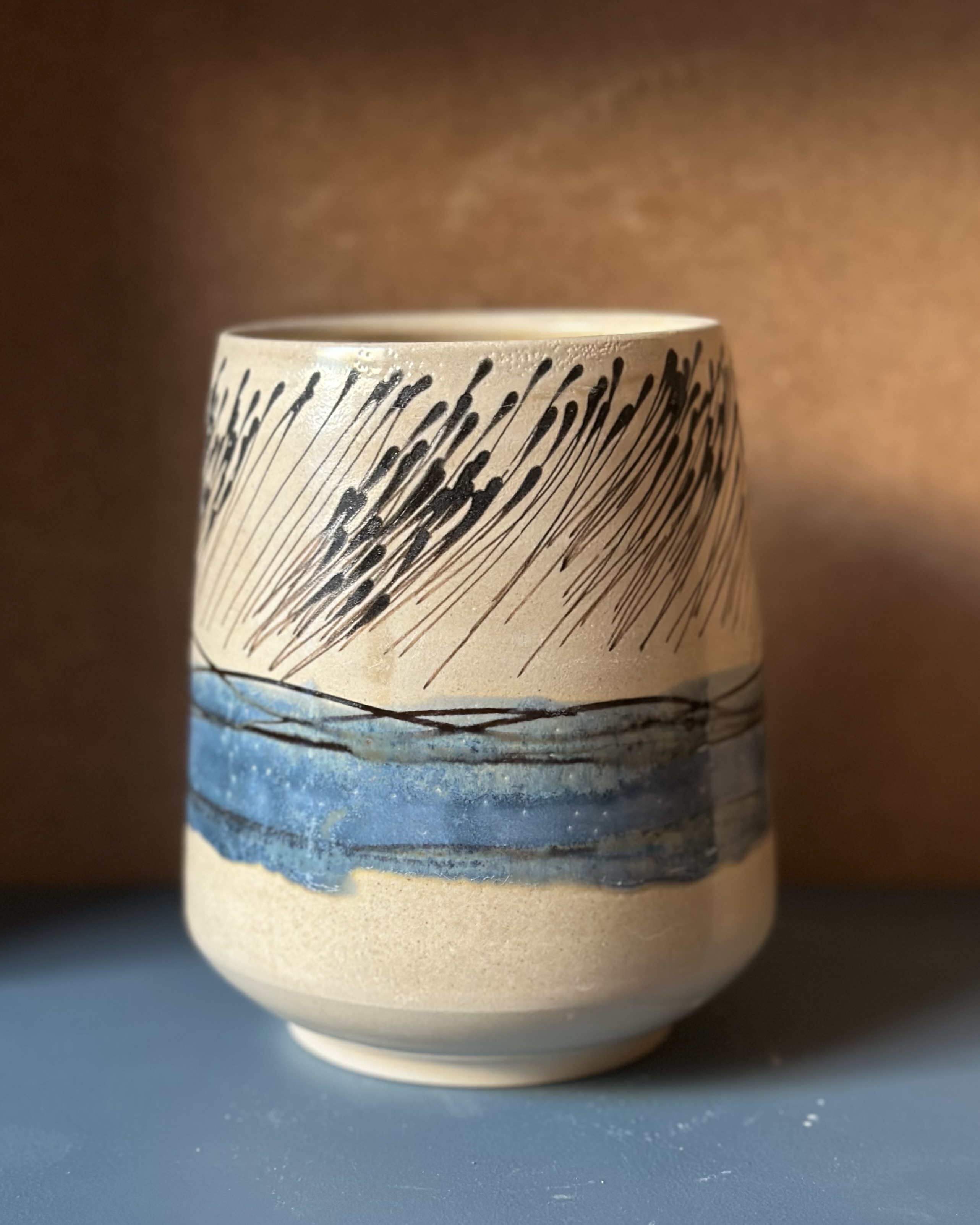 Creating is the largest part of me that I know. IfI’m not making I’m not happy. I want to make works that will remind us all to pause. To give our minds a moment of rest. A cup that sits comfortably in your hands with texture to feel and glazes that draw you in and away. That is a cup to be had. A cup that makes that first hot tea more satisfying and sets you up with a positive start to your day.