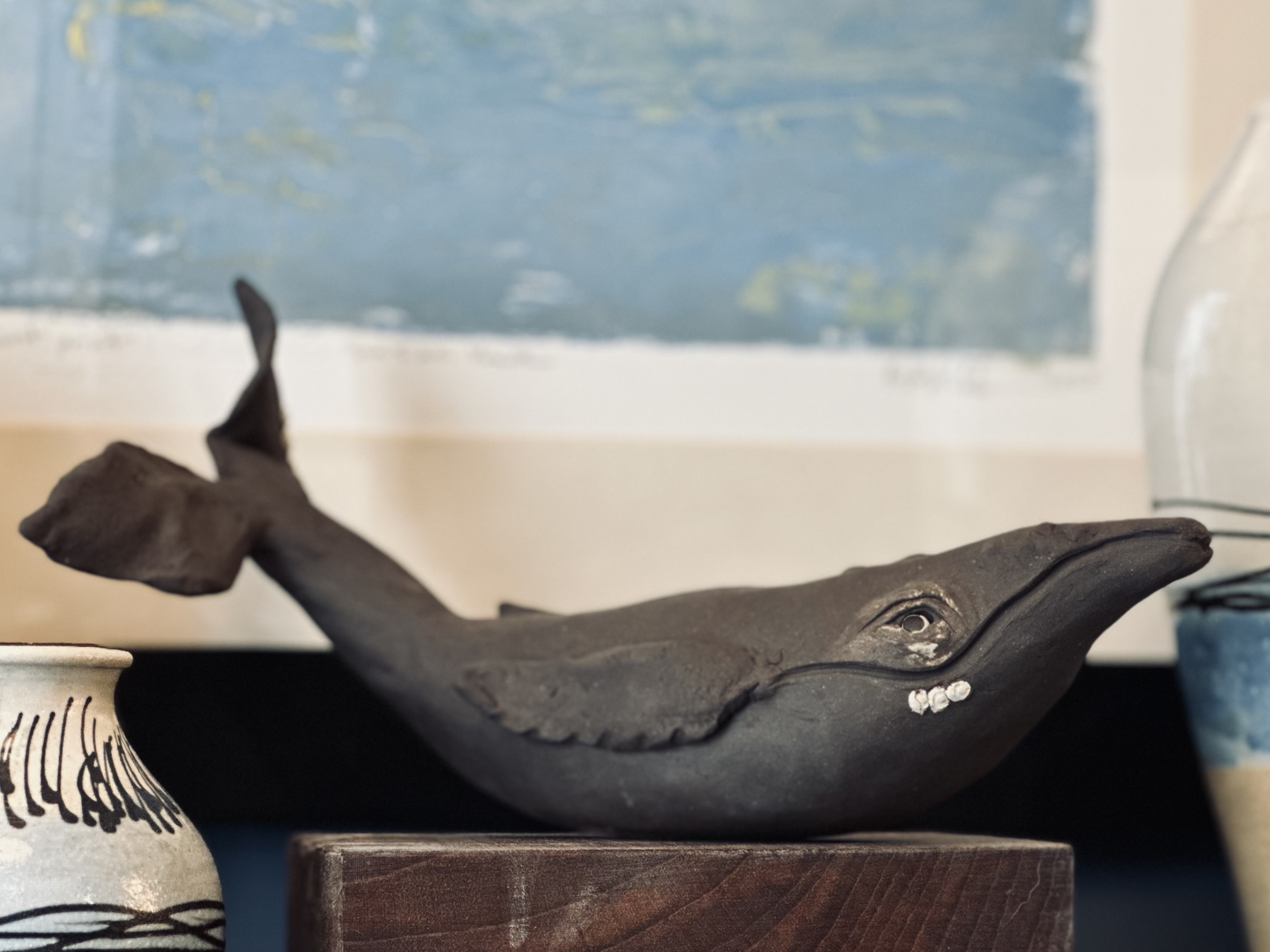 Linlithgow Pottery is the beginning of a dream coming to fruition. It’s where clay mingles with my imagination creating unique sculptures and functional pieces. Nestled in the centre of Linlithgow just off of the high street the members studio sits on two floors in an old stone building with a wood stove to keep us warm - I also have a high street space where I teach classes and run workshops. Every day Freyja (my new four legged studio manager) and I walk along the canal to get to the studio. My work is inspired by the nature surrounding us. If we spot a mouse one might appear on the lid of a jar. The spiral of a fern opening might become a pattern on a platter or a cup. The ripples in the water could inspire me to carve at a piece in a way that the glaze can sit to emulate those ripples.